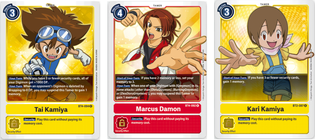 | Tai Kamiya (BT4-094) | Tamer | Yellow | 2 |