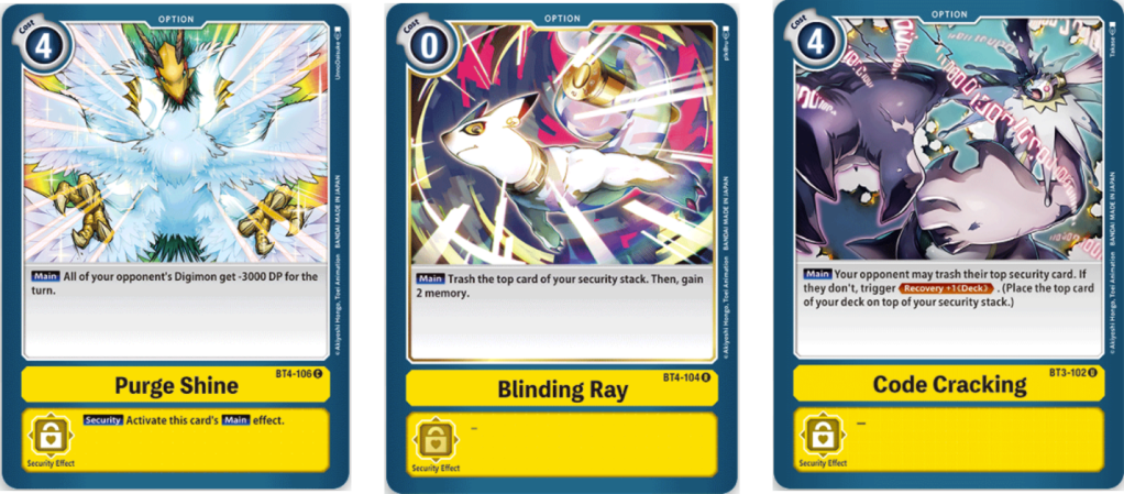 Lastly, Code Cracking is a way to recover some protection to your security stack, this card gives your opponent of trashing the top security card, however if they don’t, you are allow to add a card to your security stack. This is good if your opponent is trying to rush you or has a Digimon that can do extra Security attacks, yes you can lose the perk of some abilities but I think this is a good backup plan incase things go south quickly.