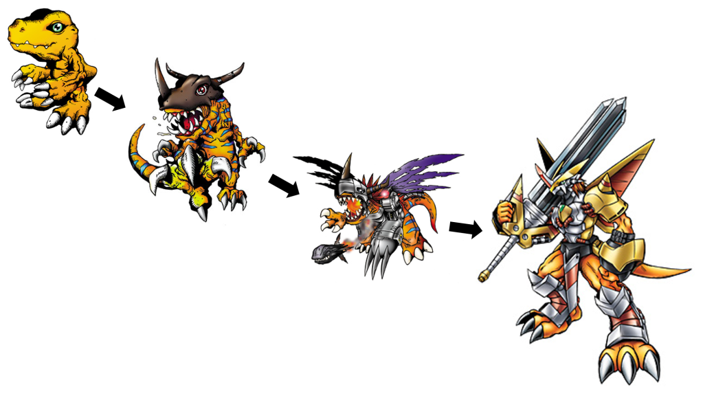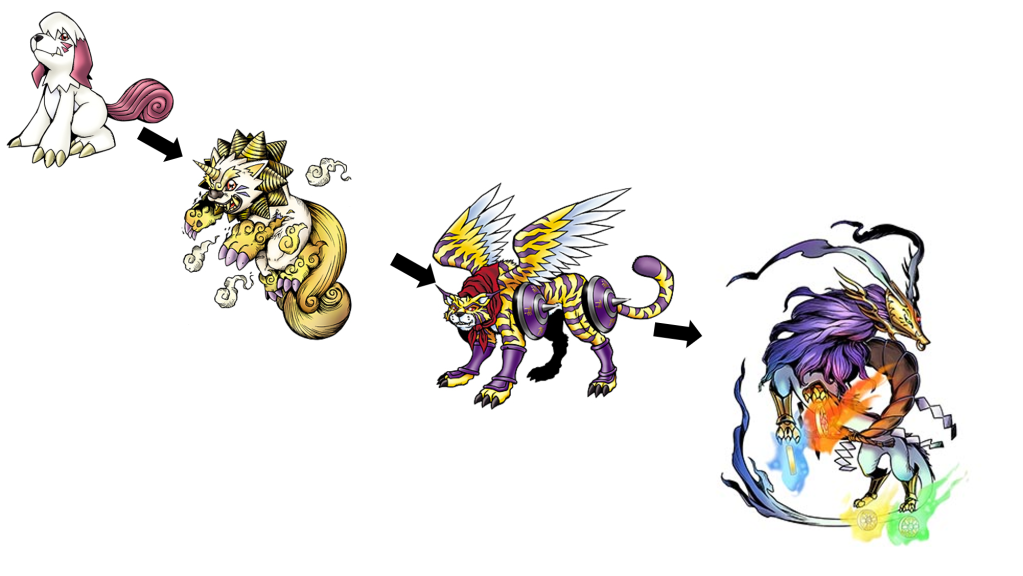 Based on images in we have scene in the trailers, I’m thinking we will probably get a tradition line of Agumon to Greymon then to MetalGreymon which wouldn’t is a bit of a downer but Agumon is one of the mascots of the franchise so not surprised. However, I think this could be a great opportunity to let VictorGreymon some time in the spotlight, since so far there isn’t a Gabumon in the game so there may be no Omegamon/Omnimon presence in this game so there really isn’t a need for WarGreymon, but this is kind of wishful thinking.