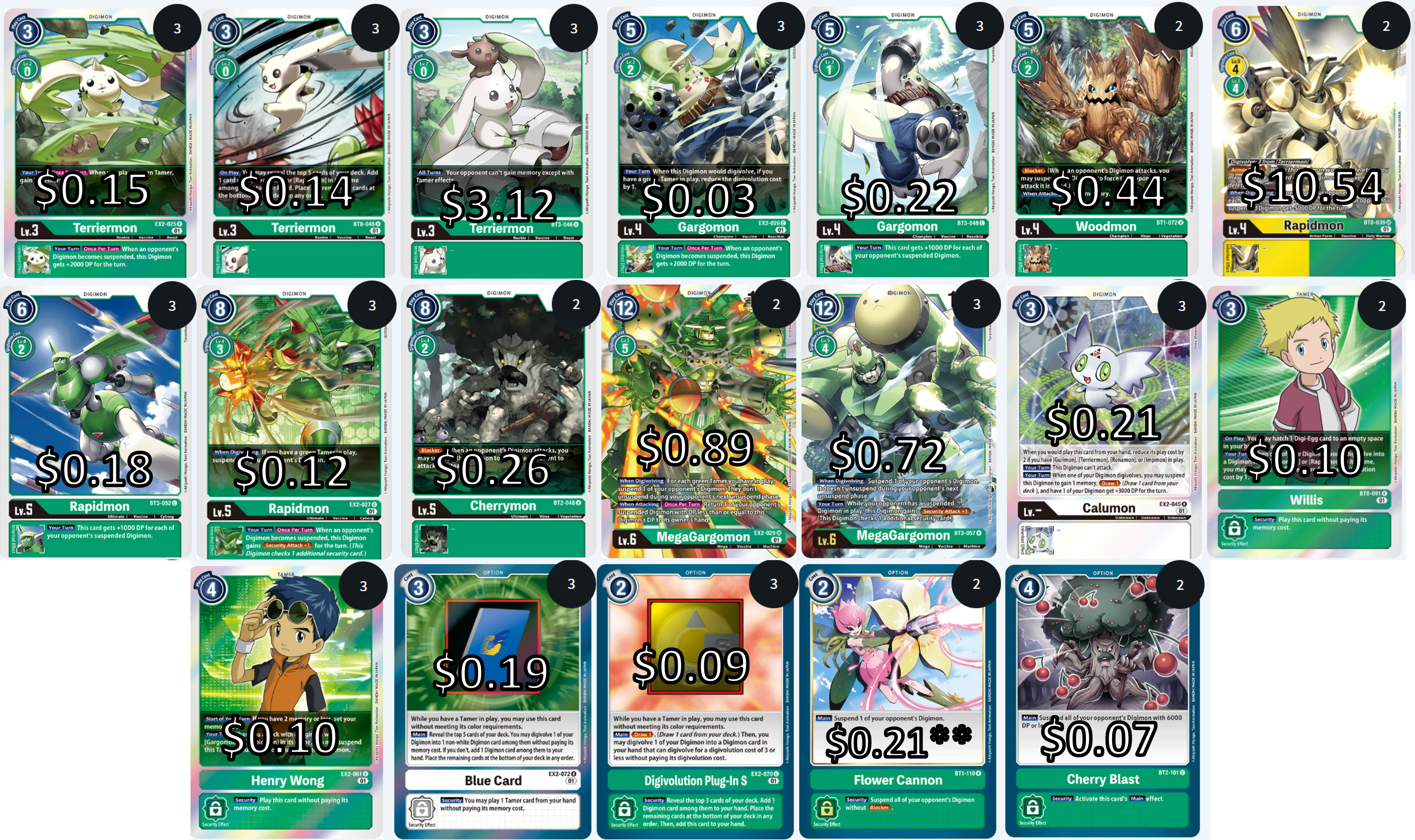 Welcome to another Deck Theory post, a series where I go through my collection and try to make a somewhat descent deck. Today we are exploring more cards from the EX02 set and building a green Terriermon deck I’ve dubbed: Green Tornado.